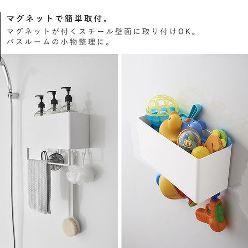マグネットストレージバスケット プレート タオルバー&ホースフック付き ホワイト