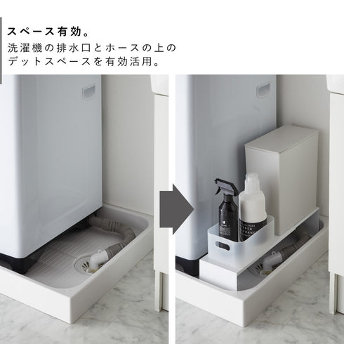 洗濯機の排水口とホースの上のデットスペースを有効活用「伸縮洗濯機排水口上ラック」。