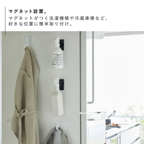 スプレーフック,スプレーボトル,フック,スプレー,マグネット,磁石,マグネット収納,マグネットラック,マグネット収納ラック,洗濯機,洗濯機横,洗濯機横収納,洗濯機横収納ラック,洗面所,洗面室,脱衣室,ランドリー,壁,壁掛け,壁面,浮かせる,浮かせる収納,空中収納,簡単設置,収納ラック,収納,ラック,ホルダー,山崎実業,tower,タワー,TOWER,ホワイト,ブラック,白,黒,モノトーン,山崎,yamazaki,生活感が出ない,すっきり,コンパクト,省スペース,シンプル,シンプルデザイン,スタイリッシュ,北欧,おしゃれ,お洒落,オシャレ,インテリア,雑貨,部屋,賃貸,マンション,一人暮らし,独り暮らし,トータルコーディネート,新生活,家族,ファミリー,整理整頓,