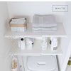 つっぱり棒に乗せるだけで棚が完成。伸縮式なので使いたい幅に合わせて設置できるつっぱり棒用棚板。