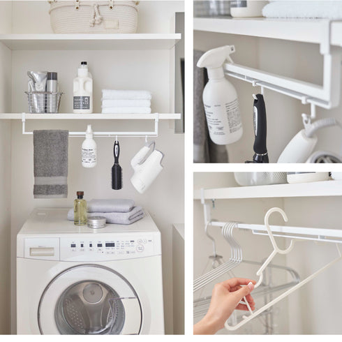 [ 洗濯機上のデッドスペースを有効活用、伸縮できる万能ハンガー ]
