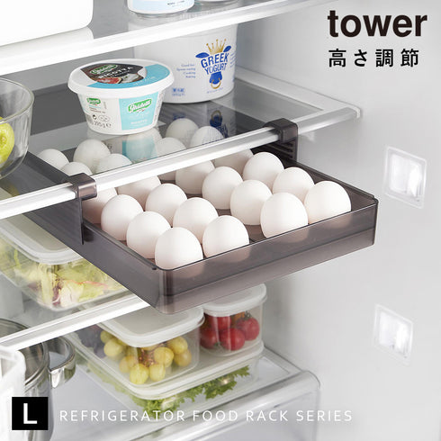 冷蔵庫中棚下高さ調節卵ラック タワー L 山崎実業 tower おしゃれ 冷蔵庫 卵 収納 グッズ 引き出し モノトーン ホワイト ブラック 10112 10113