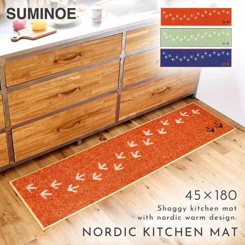 キッチンマット,180,180×45cm,北欧,滑り止め,洗える,キッチン,インテリア,おしゃれ,床暖房,床暖房対応,ホットカーペット,ホットカーペット対応,シックハウス対応,遊び毛防止,汚れにくい,キッチンラグ,キッチンカーペット,ふわふわ,フワフワ,ふかふか,台所マット,台所ラグ,フロアマット,インテリアマット,寝室,ベッドルーム,ベッド,ベッドサイド,マット,ラグ,カーペット,ラグマット,すべり止め,滑りにくい,すべりにくい,ウォッシャブル,洗濯機,スミノエ,SUMINOE,日本製,雑貨,デザインライフ,DESIGN LIFE,北欧テイスト,北欧柄,シンプル,モダン,アート,ナチュラル,お洒落,オシャレ,かわいい,可愛い,オレンジ,グリーン,緑,ネイビー,紺,ブルー,青,キーウィ,鳥,テクテクキーウィマット,TEKU TEKU KIWI MAT,