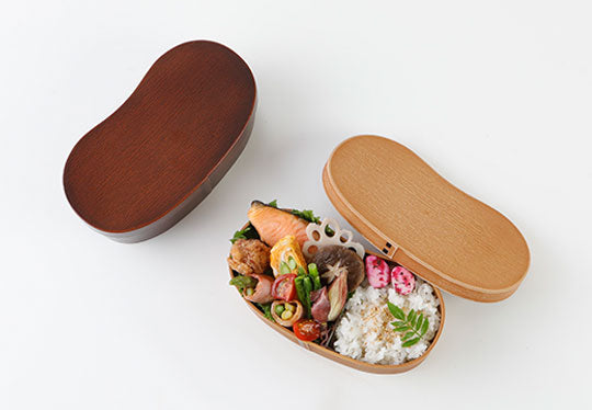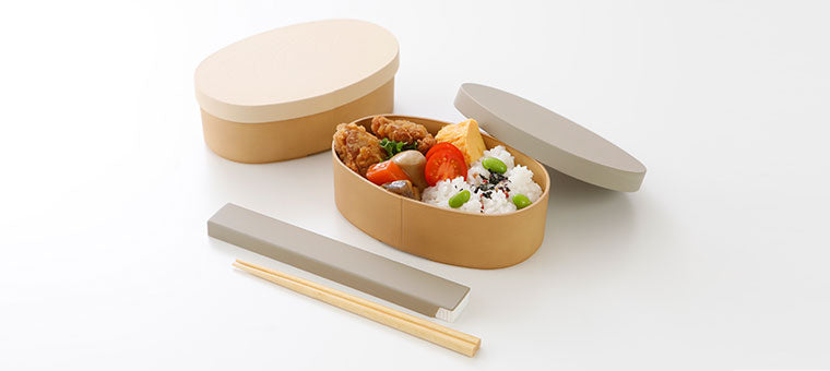 まるで木製の曲げわっぱのような質感。職人の手仕事で仕上げられた塗り弁当箱。和食でも洋食でも美味しそうに見え、食べるのも作るのも楽しみになるお弁当箱です。 樹脂性なので電子レンジ・食洗機対応。チンしたら温かいお弁当が食べられ、油汚れも洗えるので毎日のお弁当作りに重宝します。 液だれ防止できる中蓋付きで便利。(中蓋は、レンジ、食洗機対応不可) バンド付き。取り外し可能な仕切りもついています。 サイズは500ml-550ml。小学生、女子中学生、大人の女性、少食な男性におすすめのサイズです。 安心の日本製。 食中毒が気になる時期にも嬉しい、抗菌材「バクテキラー」(富士ケミカル株式会社の登録商標)中面塗装のお弁当箱です。 カラーは白木、茶、ベージュ、ライトブラウン、ダークブラウンからお選びいただけます。 同じシリーズの箸箱は、ページ下の「よく一緒に購入されている商品」からお買い求めいただけます。 ※こちらは「BPAフリー」の商品です。 カテゴリ : 生活雑貨 > 弁当・キッチン雑貨 > 弁当箱・弁当用品・水筒 > 曲げわっぱ 送料 : 650円(沖縄・離島 の場合は、1080円) ラッピング : 不可 商品詳細 サイズ:幅15.9 奥行11.7 高さ5.4cm 材質:本体/PETとABS樹脂の成型品、仕切り/ポリプロピレン 付属品:中蓋、仕切、滑り止め付きバンド 容量:ベージュ・ライトブラウン・ダークブラウン/500ml、白木・茶/550ml 原産国:日本 あたため目安:500〜600Wの電子レンジで1分程度 備考:家庭用電子レンジ対応、食器洗浄機対応(中蓋は、レンジ、食洗機対応不可) 備考:製造工程上、上蓋の中央に凹みやムラが発生する場合がございます。ご了承ください。 ITEM 商品名 曲げわっぱ...