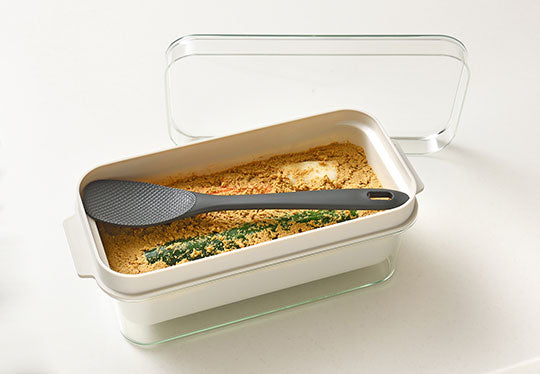 しなやかに曲がりフライパン・鍋などをキズつけず、長い物を乗せやすいロングターナー。 フライパンと食材の間に入りやすく、長い物も形を保ったままひっくり返せます。 先端が浮くので直置きにならずに清潔。食洗機OK。 収納に便利な引っ掛け穴付き。 カラーは、ブラックとホワイトの2色をご用意致しました。 便利なシリコーンコーティングのキッチンツールシリーズ、揃えて使いたくなるツールです。 Sサイズ24cmもございます。 カテゴリ : 生活雑貨 > 調理器具 > 調理ツール > フライ返し・ターナー 送料 : 650円(沖縄・離島 の場合は、1080円) ラッピング : 不可 商品詳細 サイズ:幅6.5×奥行5.5×高さ30cm 重量:40g 材質:調理部分/ナイロン、ハンドル/シリコーン 原産国:中国 耐熱耐冷温度:耐熱/250度、耐冷/-40度 備考:食洗機対応可 シリーズ名:タワー(山崎実業) メーカー品番:1501,1502 ITEM 商品名:シリコーン ハンドルロングターナー タワー 山崎実業 tower フライ返し へら...