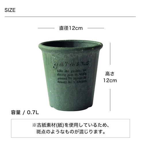 サイズ:直径12×高さ12cm 材質:ポリプロピレン、古紙 容量:0.7L 原産国:日本 備考:植木鉢の底に、水切り穴付き。