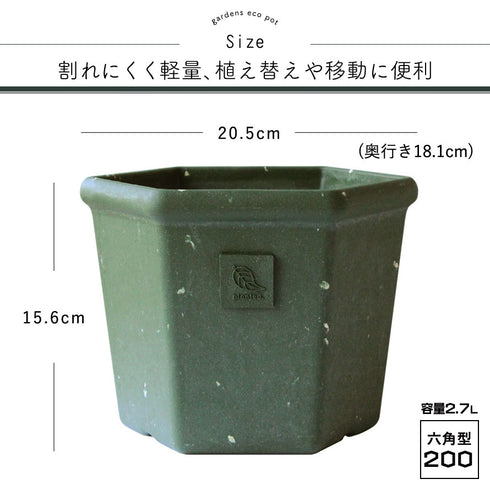 プランター 20cm アンティーク おしゃれ 屋外 プラスチック 植木鉢 gardens パピエ エコポット六角型 200 ガーデニング ガーデン 雑貨
