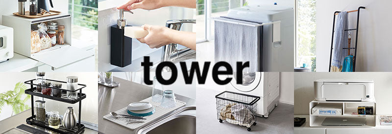 調味料ボトルやスパイス類を隠して収納。汚れをガードする扉付きラック。 調理スペースの奥などに、よく使う調味料をまとめて一括収納。扉付きで隠して収納できるので生活感を感じさせません。 扉は油はねなどの汚れ防止にも最適。前から大きく開き、開けたまま固定することができます。 マグネットで取り付けるスパイス棚付き。スパイスの高さに合わせて棚をつけられるので、上下に分けてたくさん収納できます。 下段は、お持ちの高さ約11cm以下の調味料ストッカーを収納可能。(写真は、別売のtower調味料ストッカーです。※調味料ストッカーは付属しておりません。) 底が約5cm浮いているのでお手入れも楽ちんです。 付属のフックで計量スプーンなどのキッチン小物も収納可能。 棚には、スマートフォンを置いて、レシピを確認しながら調理しても便利ですね。 水や汚れに強い粉体塗装を施しており、丈夫で錆びにくいスチール製。 スタイリッシュなカラーの、ブラックとホワイトの2色よりお選びいただけます。 カテゴリ : 生活雑貨 > 調理器具 > 保存容器・調味料入れ > 調味料収納 送料 : 無料 ラッピング : 不可 出荷元 : メーカー直送 商品詳細 サイズ:幅38×奥行16.3×高さ49.2cm 重量:6050g 材質:本体/スチール(粉体塗装)、ローラー部分/POM樹脂 内寸サイズ:天板/幅37.5×奥行13.7cm、収納部上段/幅37.5×奥行13.7×高さ30cm(ローラー部分含まず)、収納部下段/幅37.5×奥行13.7×高さ11cm、マグネットスパイス棚/幅17.7×奥行12cm 耐荷重:天板/1kg、調味料収納部/3kg、ストッカー収納部/3kg、マグネットスパイス棚/1kg、フック1つあたり/250g 原産国:中国 付属品:クッション×4、フック×2、マグネットスパイス棚 メーカー品番:2009,2010 ITEM 商品名:スパイスラック tower...