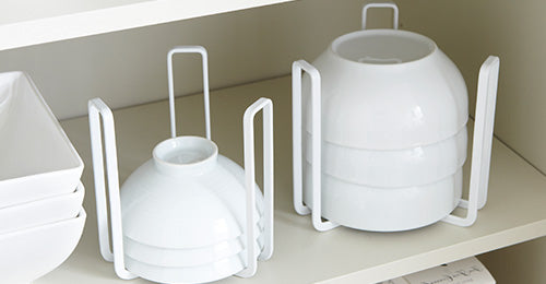 2段に分けて収納できる便利なディッシュラック。 サイズ違いのお皿を分けて収納できます。両手を使って、下から取り出さないといけなかった大きなお皿が、片手で簡単に取り出せます。スムーズに取り出せてお皿も傷つきにくい! 食器棚を整理できて見やすくなり、今まで使えなかった上部の空間も有効活用できます。 コの字型なので下段は幅広いものも収納できて便利です。 直径15-26cmのお皿が、各段に6-8枚程度収納できます。耐荷重は1.5kgなので安心。 食器棚はもちろんシンク下やラックなど、使い方色々! スチール製の丈夫で錆びにくいフレームなので、長くお使いいただけます。 キッチンに馴染むモノトーンカラー、ブラックとホワイトの2色をご用意致しました。 カテゴリ : インテリア > インテリア収納 > キッチン > 食器ラック 送料 : 650円(沖縄・離島 の場合は、1080円) ラッピング : 不可 商品詳細 サイズ:幅26.5×奥行19.5×高さ8.7cm 材質:スチール(粉体塗装) 原産国:中国 備考:耐荷重/1.5kg、直径15-26cmのお皿が、各段に6-8枚程度収納できます。(お皿の暑さにより枚数は異なります。) シリーズ名:タワー(山崎実業) メーカー品番:7488,7489 ITEM 商品名 ディッシュラック ディッシュスタンド 皿立て お皿 ホルダー 収納 食器ラック...