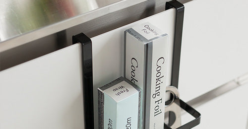 マグネットで簡単取付。大判タイプにも対応のトレー付きペーパーホルダー。 マグネットがつく冷蔵庫横やキッチンパネルなどに簡単取付。必要な時にすぐキッチンペーパーを取り出せて便利。 カバーがあるのでキッチンペーパーが汚れにくい構造。大判タイプの海外製キッチンペーパーロールにも対応しています。 上部にはトレー付き。調味料などを置くことができます。 汚れ防止のカバーにはマグネットがつくのでメモなどを貼り付けても◎。 付属のフックにはキッチン小物を引っ掛けて収納できます。フックはお好みの位置に取り付け可能です。 キッチン周りで必要な小物を、置いて、貼って、引っ掛けて、一括収納できる優れものです。 インテリアの邪魔にならないスタイリッシュなフォルム。モノトーンカラーのホワイトとブラックからお選びいただけます。 カテゴリ : インテリア > インテリア収納 > キッチン > マグネット収納 送料 : 650円(沖縄・離島 の場合は、1080円) ラッピング : 不可 商品詳細 サイズ:本体/幅30.2×奥行17×高さ17.5cm、トレー部/幅28×奥行15cm 重量:1750g 耐荷重:トレー部/2kg、ハンガー部/750g、フック(1つあたり)/250g(衝撃をゼロとした場合の耐荷重です。) 対応サイズ:直径15×高さ28cm以内のキッチンペーパーロール 材質:本体/スチール(粉体塗装)、マグネット、滑り止め/シリコーン 原産国:中国 取り付け可能な壁面:マグネットがつく平らな面、スチール壁面 付属品:フック×4 メーカー品番:4098,4099 ITEM 商品名:大判 キッチンペーパーホルダー マグネット タワー キッチンペーパー...