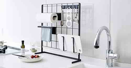 キッチンのデッドスペースを収納に。 「レンジフードメッシュパネル」は、別売りの収納ツールを組み合わせることができる収納パネル。 レンジフードに挟み込むだけの簡単設置。 別売りのtowerの専用収納パーツを引っ掛けて、自由にオーダーメイド感覚の収納を作ることができます。 レンジフード下のデッドスペースを利用して、ラップやキッチンツール、スパイスボトルなど普段使っているキッチン道具を手の届きやすいところに収納可能。 別売の収納パーツ無しでも付属の10本のフックで様々な収納が可能。 フック一つあたりの耐荷重は約500gで、フライパンや片手鍋も収納できます。お料理の時短にもなります。 フレームは水や汚れに強い粉体塗装を施しており、丈夫で錆びにくく、長くお使いいただけます。 キッチンに馴染むシンプルな形と主張しないモノトーンカラー。 ホワイトとブラックからお選びいただけます。 ※こちらは「レンジフードメッシュパネル」のページです。専用のパーツや小物は付属されていません。別ページで販売中です。 カテゴリ : インテリア > インテリア収納 > キッチン > 引っ掛け収納 送料 : 650円(沖縄・離島 の場合は、1080円) ラッピング : 不可 商品詳細 サイズ:幅52×奥行3×高さ57cm 重量:840g 材質:本体/スチール(粉体塗装)、キャップ/シリコーン 耐荷重:本体/約7kg、フック一つあたり/約500g 付属品:フック×10 対応サイズ:レンジフードの幅/約52cm以上、折り返しの厚さ/約3mm以内、折り返しの高さ/約7mm以上、溝幅約20〜3mm以内 原産国:中国 シリーズ名:タワー(山崎実業) メーカー品番:4832,4833 ITEM 商品名 レンジフードメッシュパネル...