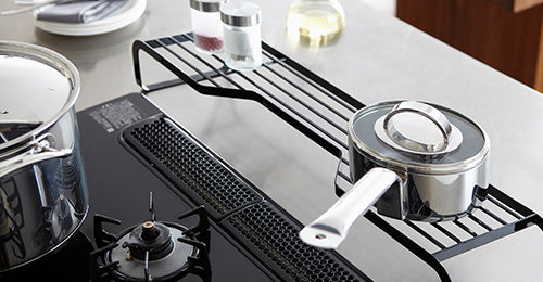 使用していないガスコンロの上が収納&作業スペースに早変わり。 ビルトインガスコンロや据え置きタイプのガスコンロなど、使用していないコンロ上に設置。作業スペースになる便利なアイテム。 使わない時は足を折り畳んでコンパクトに収納可能! 転倒防止付きのストッパー付き、足部分に滑り止めが付いて便利です。 コンロ2個分に対応。 スチールで丈夫、錆びにくく長くお使いいただけます。 モノトーンカラーでキッチンにもスタイリッシュに馴染みます。ホワイトとブラックの2カラーからお選びいただけます。 カテゴリ : インテリア > インテリア収納 > キッチン > コンロまわり 送料 : 650円(沖縄・離島 の場合は、1080円) ラッピング : 不可 商品詳細 サイズ:使用時/幅54.5×奥行33.5×高さ7.2cm、収納時/幅52×奥行33.5×高さ2.5cm、天板サイズ/幅51.5×奥行32.5cm 材質:本体/スチール(粉体塗装)、キャップ/シリコーン 耐荷重:約5kg 原産国:中国 対応サイズ:シンクの天板から高さ約7cm以下のビルドインガスコンロ、据え置きガスコンロ(五徳を含む) シリーズ名:タワー(山崎実業) メーカー品番:4922,4923 ITEM 商品名 折り畳みガスコンロカバー ワイド タワー 山崎実業 tower ガスコンロ カバー...
