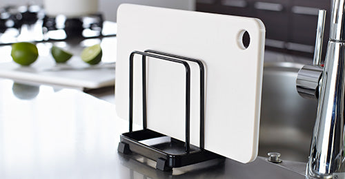 丸いまな板を浮かせて置ける!乾きやすく清潔に収納可能できるスタンド。 人気の丸いまな板はもちろん、普通の四角いまな板にも対応。 下に隙間があり、浮かせて収納できるので、乾燥しやすくいつでも清潔を保ちます。丸形や真四角でない天然木のまた板などにもおすすめです。 直径約18〜36cmの丸いまな板は2枚収納できます。厚みが約3.5cm以内の、厚みのあるまな板も1枚収納可能。 シリコーンクッションで設置面も傷付けず安心。 カラーは、ブラックとホワイトの2色をご用意致しました。 カテゴリ : インテリア > インテリア収納 > キッチン > ツールスタンド収納 送料 : 650円(沖縄・離島 の場合は、1080円) ラッピング : 不可 商品詳細 サイズ:幅16×奥行11.8×高さ17.5cm 材質:スチール(ユニクロメッキ+粉体塗装) 重量:410g 原産国:中国 内寸サイズ:丸いまな板収納部/幅16×奥行2×高さ13.5cm、厚いまな板収納部/幅16×奥行3.5×高さ16cm 対応サイズ:丸いまな板対応サイズ/直径約18〜36cm以内 付属品:クッション×4 シリーズ名:タワー(山崎実業) メーカー品番:6178,6179 ITEM 商品名 丸いまな板が置ける まな板スタンド タワー 山崎実業 tower まな板...