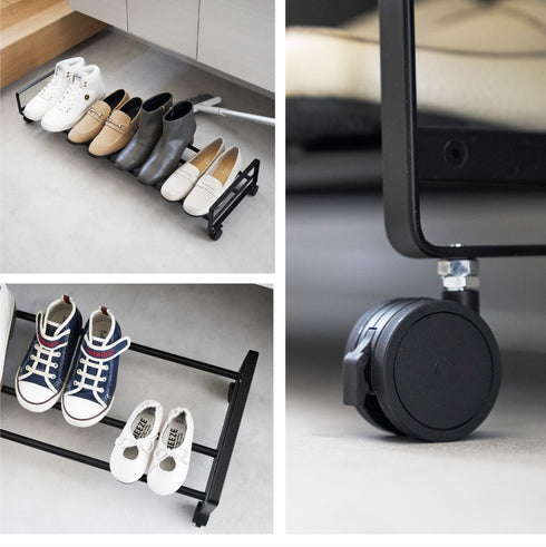 [ キャスター付きで簡単に出し入れできるシューズラック。 ]